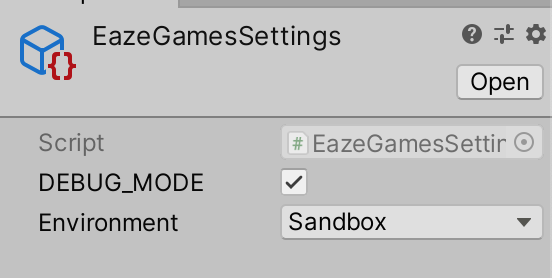Also EazeGamesSettings contains DEBUG checkbox, that will enable the EazeGamesSDK to log some Debug messages into console.