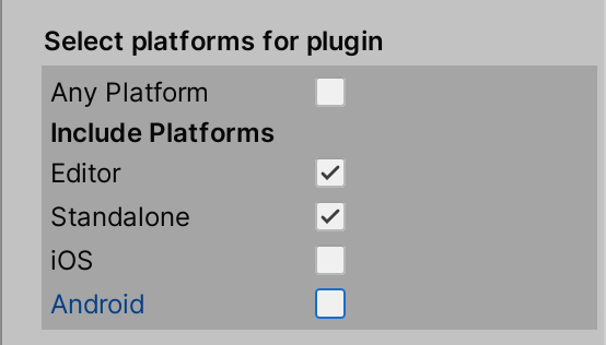 Assets/EazeGamesSDK/DLLfolder we have two sub foldersUNITY_DUMMYandUNITY_IPHONE. Those folders containEazeGamesSDK.dllforUnity editorandiOSrespectively. We need to make sure, that Unity didn't mess with platform selection for these dlls. Select eachdlland inInspectorview checkSelect platforms for pluginto be:- only